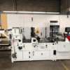 *NEW* Platinum WPA-1000DSV Window Patcher Servo Motor Driven Feeder Timing Belt System, Servo Motor Driven Rotary Knife Film Cutting System, Timed Delivery Conveyor Belt for Batch Counting, Vacuum Suction Belts in Delivery Section, Easy adjustment for running 1up or 2up position, Special treatment of the film cylinder to minimize film scratching, 30mm Main machine side frames for increased machine stability, Standard suction belt to hold the blank in synchronized position while applying glue, Photo sensor detector automatically controls the glue roller to lift off when blank is not fed, The glue station slides out for easy cleaning and access to the rollers, The gluing rollers adjust forward and backwards, left and right for easy positioning and registration of substrate, Blank Length: 100mm ~ 710mm, Blank Width: 80mm ~ 480mm, Film Length: 38mm ~ 520mm, Film Width: 30mm ~ 400mm, Film Thickness: 0.03mm~0.20mm (Straight Preparation), Feed Material: Cardboard, E-flute Corrugated Cardboard, Film Roll Specification: 400mm (16”) Roll, 3” Core Max Working Speed: Length over 330mm: 300 sheets/min, Length less than 330mm: 600 sheets/min, CE Certified Reference #WPA-1000DSV